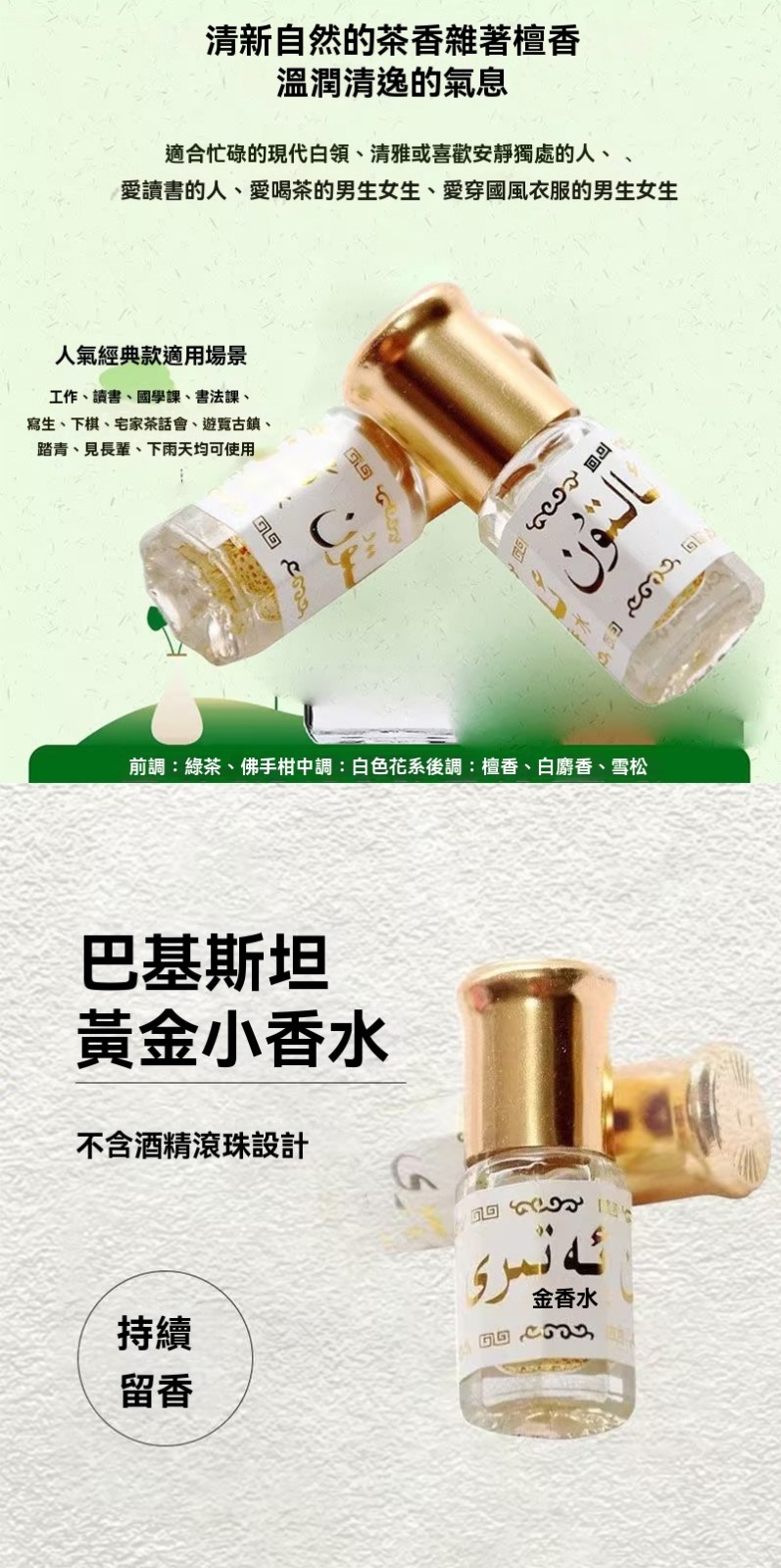 4分鐘前巴基斯坦黃金香水的主要成分是不含酒精,不含麝香的高純度香精。 這種香水以其高濃度和持久留香的特點而受到關註。它的香味被描述為奶香奶氣的,帶有一種保護欲,聞起來非常舒適。香水的香味被形容為清雅的奶香,適合日常使用;巴基斯坦黃金香水以其高純度和持久留香的特性,能夠散發迷人的魅力,類似於古代歡宜香的效果,因此被賦予了歡宜香的稱號。這種香水不僅具有自然體香的效果,還能在特別場合帶來愉悅與放松的感覺, - 【團購優惠】24入組-NT$1280