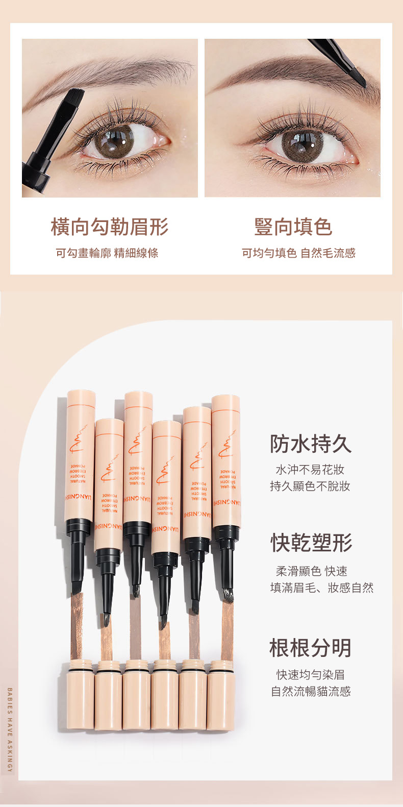 12分鐘前熱賣防水防汗染眉膏自然立體野生眉 一筆多用 眉毛、眼線、臥蠶、下至通用 持久不暈妝 - 任選5隻-免運費1198