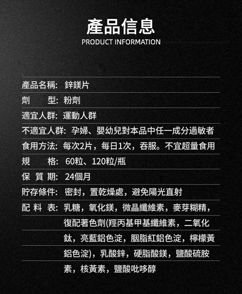 2分鐘前【品牌狂歡購】男士鋅鎂片(60粒/瓶),增肌、促睾!讓你成為硬漢男神!每日2片,餐後半小時內服用!鋅鎂是男人必備的元素,有效增肌、促睾,讓你精力充沛,讓你更強、更贏、更持久! - 【戰力十足二療程装】6瓶(360粒)=NTS1199