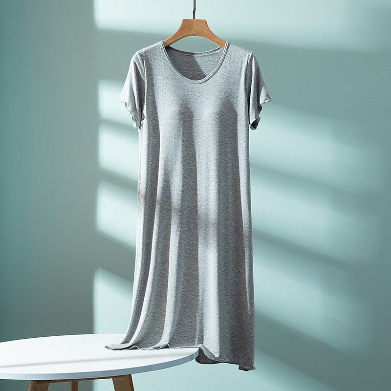 5分鐘前 莫代爾帶胸墊睡裙 夏季女罩杯一體睡衣連衣裙 寬松木耳邊家居服 - 【98%選擇】2入組-NT$1320
